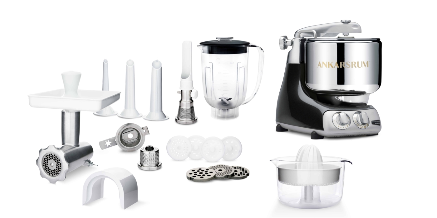 Ankarsrum Küchenmaschine + das Deluxe Set in unterschiedlichen Farben